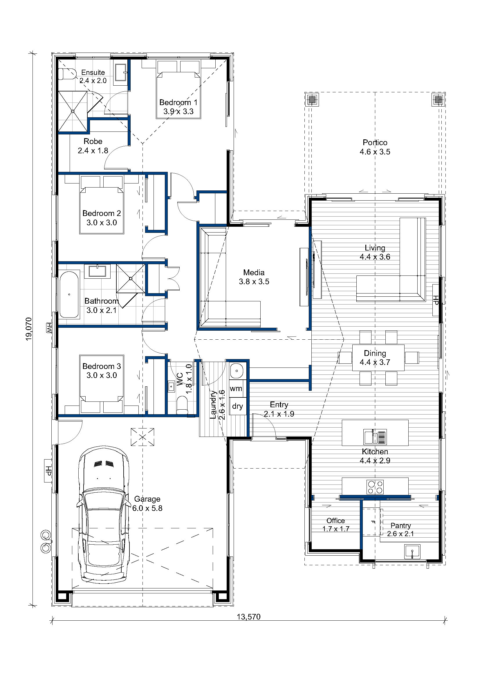 The Ropere plan includes three bedrooms, two and a half tiled bathrooms, and a separate office, making it ideal for working from home or managing a busy household. The master suite includes an ensuite and walk-in wardrobe, providing a private retreat within the home.