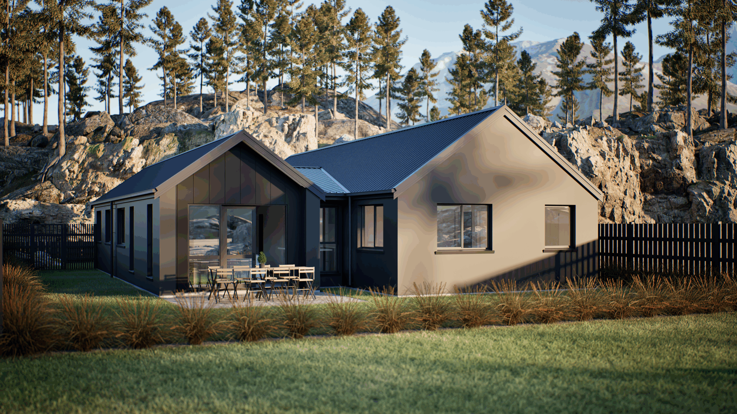 The Takitimu plan features a spacious open plan kitchen, dining, and living area, designed to bring people together. The designer kitchen includes a walk-in pantry, high-quality finishes, and generous bench space, making it ideal for both family meals and entertaining.